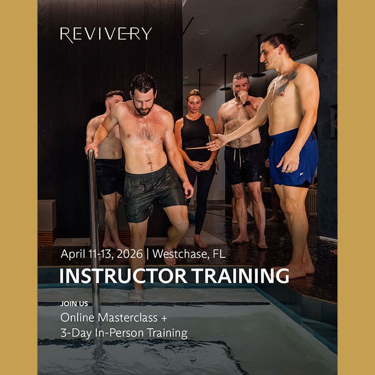 Gain the expertise and confidence to lead in wellness’s fastest-growing field. Through a transformative 3-day onsite experience, you'll learn the art and science behind the Revivery Method — enabling you to regulate your nervous system, expand your toolkit, and hold space for your sauna and cold plunge clients in an entirely new way. Tuition: $1,495 Early Bird: $1,270 (Ends March 31st)
